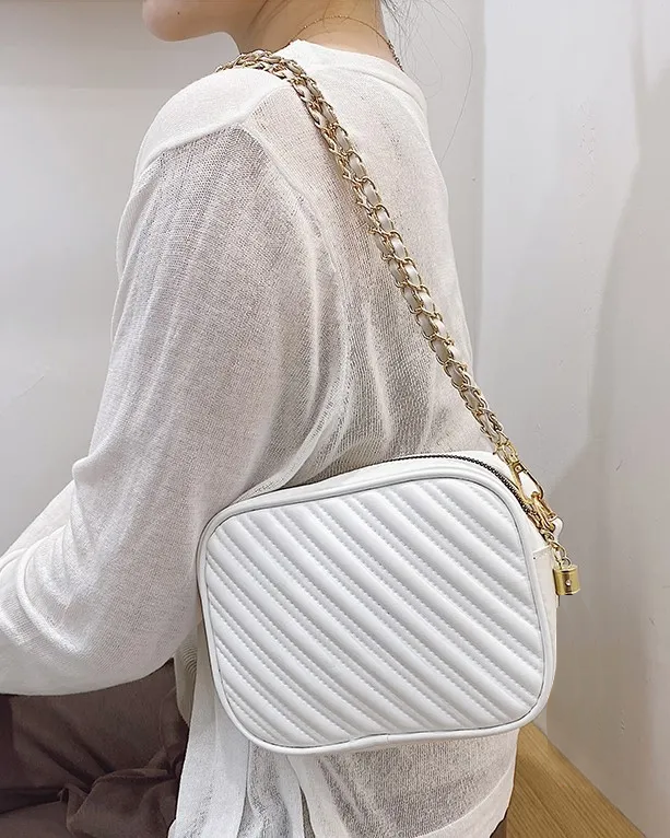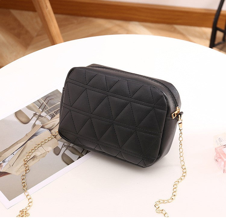 Mini Quilted Detail Chain Square Bag ~ Black