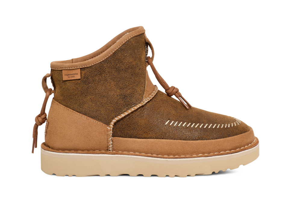 Created with a commitment to exacting artisanship, precision cutting, and premium construction methods, the Regenerate by UGG collection is a pinnacle execution of everything consumers love about our icons. From a bold stitch-out aesthetic reminiscent of the Classic Boot to innovative comfort details like our unique footboard design, we've worked hard to ensure that our commitment to regenerative sourcing only enhances the beauty and durability of our shoes.
