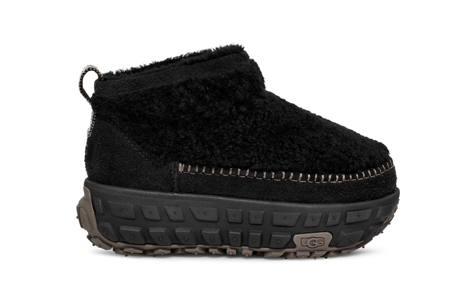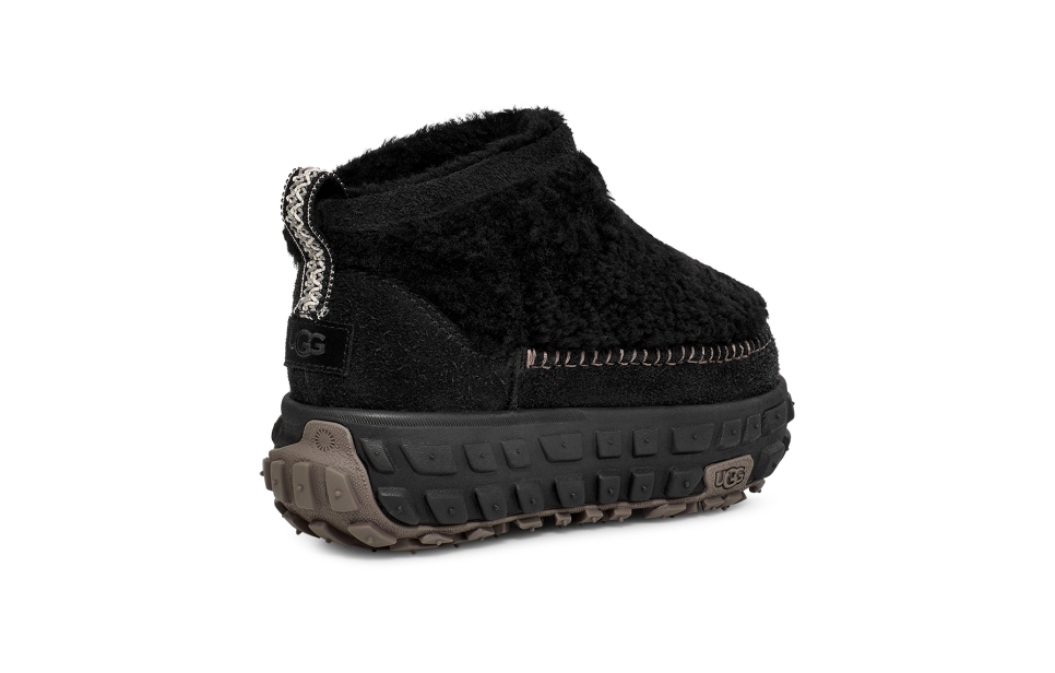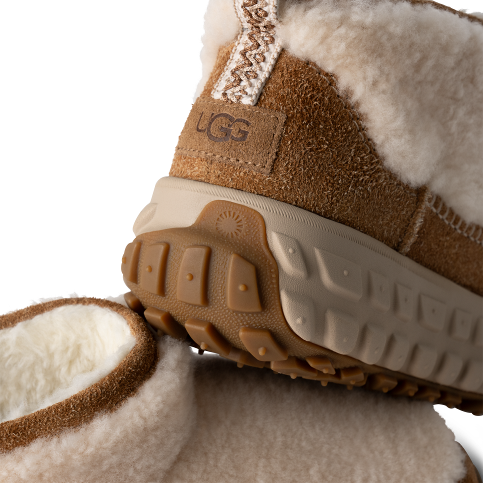 - Padded, Webbing backstay pull loop, UGGbraid detailing, Leather heel counter, Leather mudguard, 7mm curly sheepskin shaft, 7mm curly sheepskin vamp