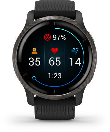 Log a 2-minute session to record key stats, including heart rate2, heart rate variability, Pulse Ox3, respiration and stress. Then generate a report with those stats via the Garmin Connect app on your compatible smartphone to share.