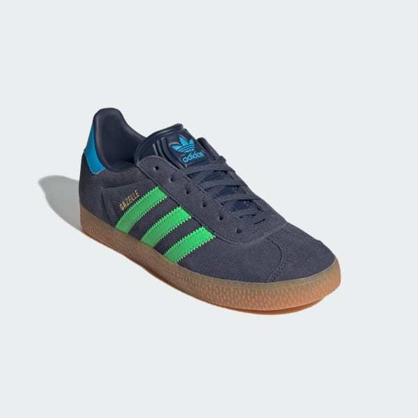 The original Gazelle first made its mark as a multi-purpose training shoe and is now a beloved streetwear classic. These juniors' shoes are an exact replica of the '91 Gazelle. Made in authentic style with a textured suede upper and vintage colors.