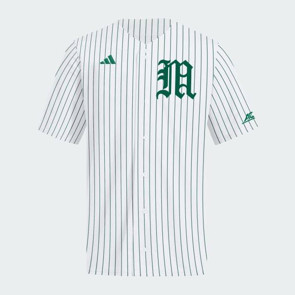 The Miami Hurricanes Pinstripe Full Button Jersey brings classic college baseball style into everyday wear, celebrating the legacy of Hurricanes baseball. Featuring traditional pinstripes and a full button front, it channels a timeless on-field look with strong collegiate identity.Designed with a regular fit, the silhouette works on its own or layered over a favorite tee. The button placket reinforces the authentic baseball jersey feel, while the construction supports ease of movement for game days, campus wear, or casual weekends.Finished with official Miami Hurricanes detailing, this jersey goes beyond game-day apparel. It’s a clear expression of team pride, built for supporters who carry that connection well beyond the diamond.