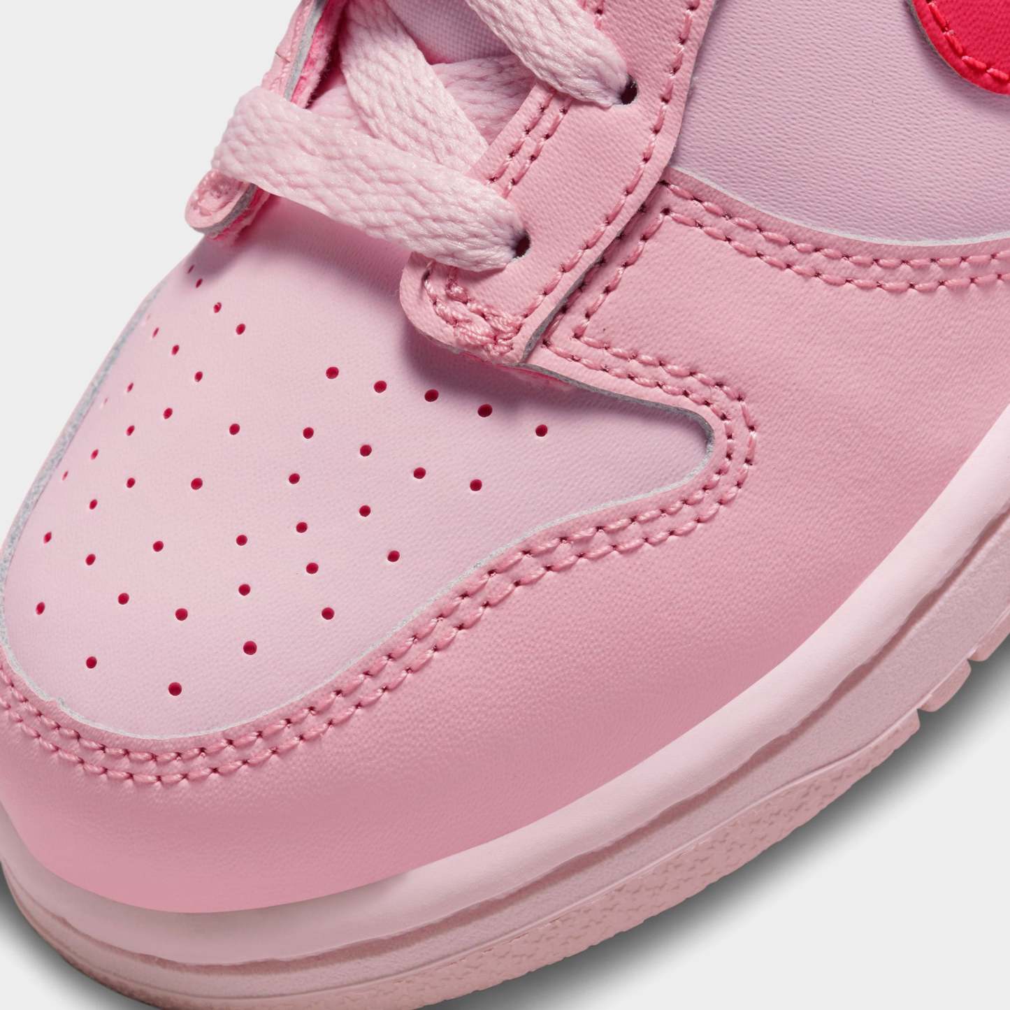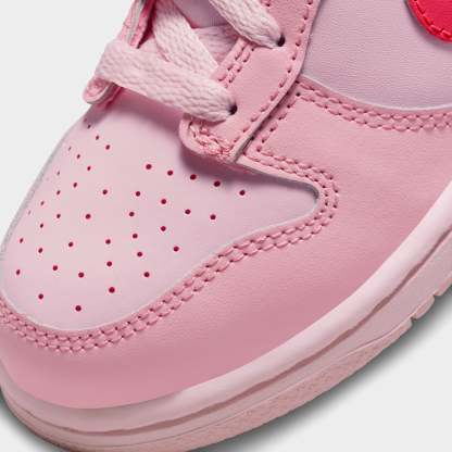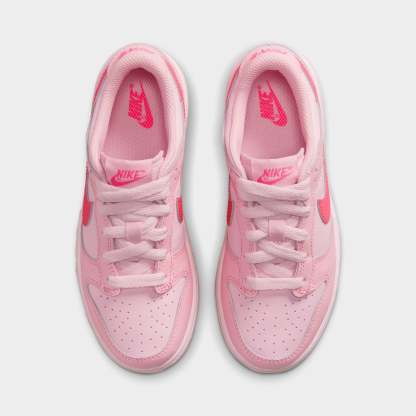 Have your little one feeling cute and stylish with this all-pink nithtke Dunk Low PS __riple Pink.___ sneaker legend across sport cultures for generations, this classic sneaker is crafted with durable leather and an '80s hoop shape. An all-time favourite and easy edition to your blossoming sneakerhead's collection.