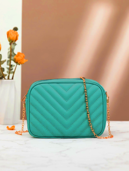 Introducing our Fashionable Chevron Square Bag in a vibrant Green hue! This trendy accessory is designed with a stylish Chevron pattern and features a chain strap for an added touch of sophistication. Crafted from high-quality materials, this bag is made of 100% Polyurethane (PU Leather), ensuring durability and a luxurious look.