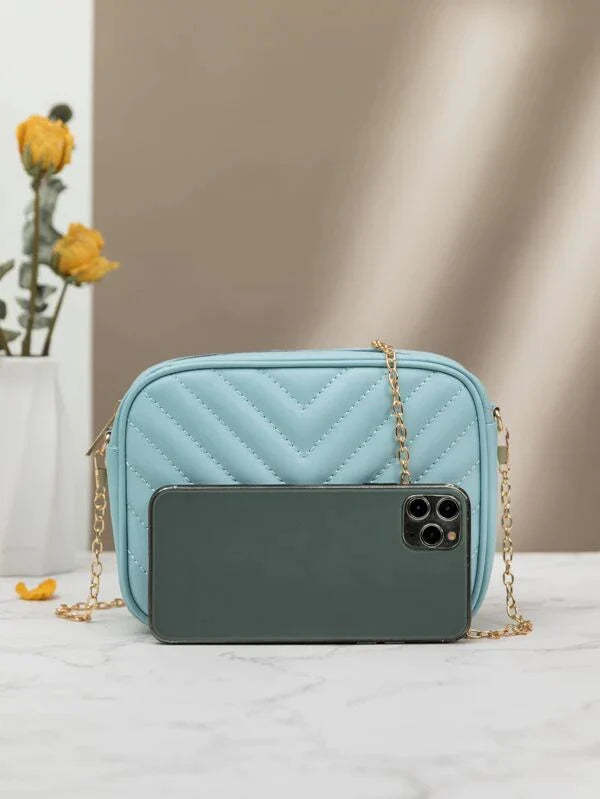 Elevate your style with this chic Square Bag, perfect for any occasion. Its compact size makes it versatile and easy to carry, while the Chevron pattern and chain strap add a fashionable flair. Crafted from premium PU Leather, this bag is not only stylish but also durable. Make a statement with our Fashionable Chevron Square Bag in Sky Blue!