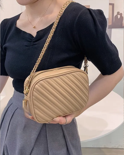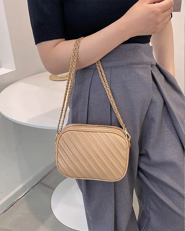 "Versatile Style Alert! Our Inspired By Shein Stitched Sling Bag in Black is the perfect companion for any dress. Ideal for brunch dates, it features a chic chain sling, spacious interior, and effortless style. Check out the product measurements to ensure the perfect fit."