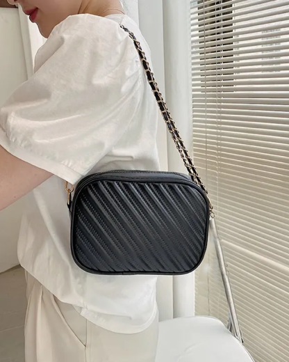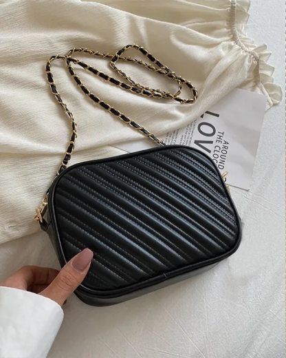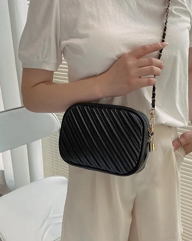 "Versatile Style Alert! Our Inspired By Shein Stitched Sling Bag in Black is the perfect companion for any dress. Ideal for brunch dates, it features a chic chain sling, spacious interior, and effortless style. Check out the product measurements to ensure the perfect fit."