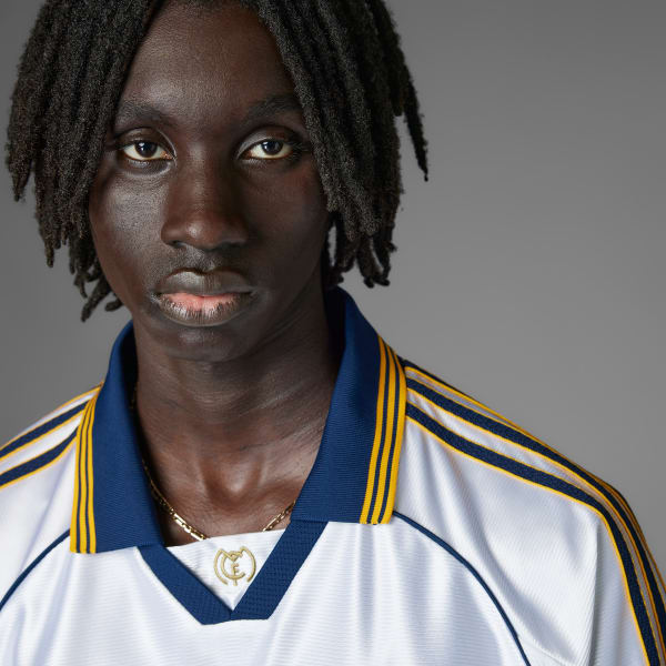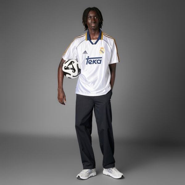 Relive a magical Real Madrid triumph in this one-to-one remake of the club's 99/00 home jersey. The adidas shirt the playerspulled on before while celebrating with European soccer's most treasured trophy in Paris, it teams a Henley collar with a classic loose fit. Woven onto the chest, that era-appropriate club badge adds the final detail to a top that's perfect for dedicated fans and soccer fashionistas.