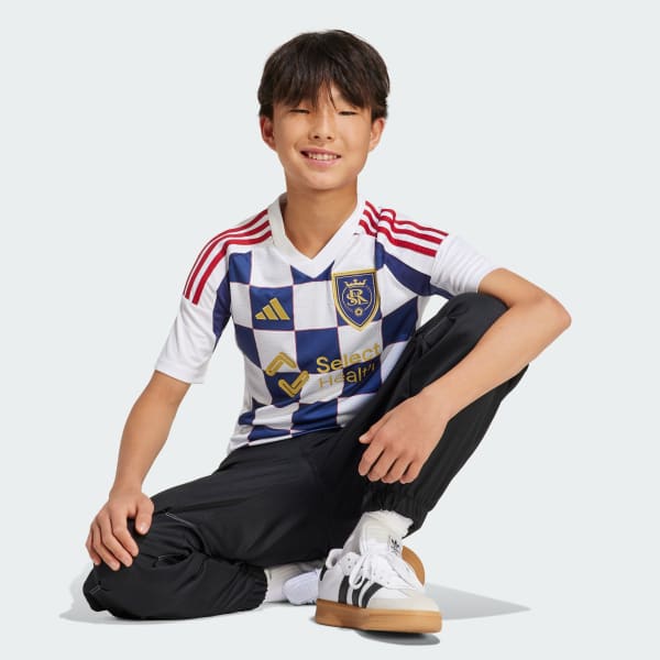 A tribute to their home. The bold checkered pattern on this juniors' adidas Real Salt Lake away jersey reflects the grid structure of the club's home city, while those intricate, tonal details within it nod to the Beehive State. A sewn-on team badge and a foundation year sign-off share your soccer pride. Behind all that rich symbolism, AEROREADY is there to keep you comfortable in the stands. This product is made with 100% recycled materials. By reusing materials that have already been created, we help to reduce waste and our reliance on finite resources and reduce the footprint of the products we make.