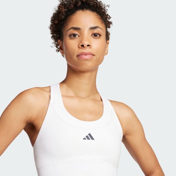This adidas medium-support sports bra keeps you focused on big hikes and long runs. Sleek, lightweight fabric keeps you comfortable as you log miles. Multiple pockets provide handy storage so you can stash cash, keys or gels. CLIMACOOL wicks and disperses sweat for cool, dry and distraction-free performance.CLIMACOOL helps you manage sweat with materials that wick and manage sweat quickly. Its fast-dry fibers give you a fresh-skin feel.This product is made with at least 70% recycled materials. By reusing materials that have already been created, we help to reduce waste and our reliance on finite resources and reduce the footprint of the products we make.