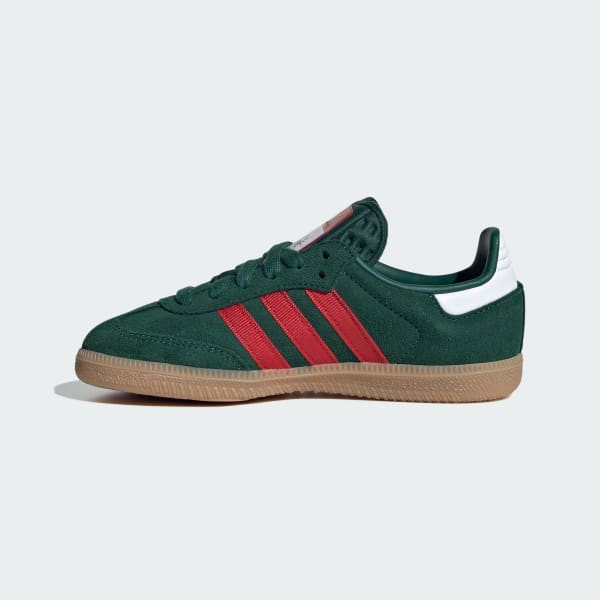 These shoes are a timeless classic that have journeyed from football pitches to skate parks since the 1950s. These shoes are more than just footwear; they're a legacy that your kids can make their own. Designed to stick around, these shoes are a wardrobe staple that offer a sophisticated update to the original Samba, without losing the old-school charm of the classics. With Cold Cement construction, these shoes are built for the street, offering durability and style in equal measure. The gold tongue design and oil print Samba lateral branding add a subtle touch of the modern, while the 3-Stripes make sure that every step you take is steeped in classic adidas heritage. The Samba OG shoes are made for kids who want to make their own mark with the legacy of adidas.