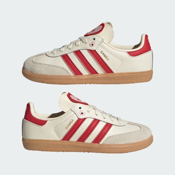Experience wearable legacy with our Samba OG Shoes, a true icon of adidas Originals. Since the 1950s, Samba has been embraced by generations on soccer fields and skate parks for its timeless design and versatility.Crafted with a quality upper and T-toe, we offer a classic look that stands the test of time. Designed for kids, our sneakers feature a gum tooling making them suitable for school, play, or casual outings.The OrthoLite® sockliner provides comfort, while the eye-stay lace closure and elasticized laces create easy wearability. Classic Originals tongue branding and embossed 3-Stripes add a touch of style.Whether they're running around the playground or exploring new adventures, our durable sneakers are a piece of history that your little one can make their own.