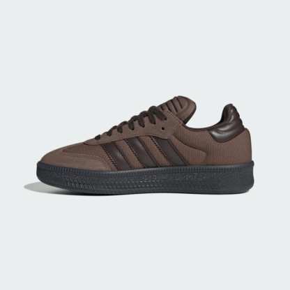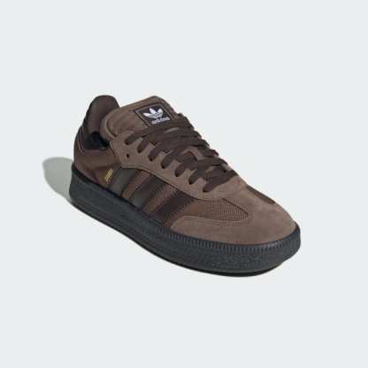 From their beginnings as indoor soccer sneakers, adidas Samba shoes have been making their mark for over 70 years, and they're not done yet. This version gets the XLG treatment, staying true to the original Samba look while adding some utilitarian edge. The leather and textile upper is finished with a suede toe overlay, iconic 3-Stripes and a heel tab for easy on and off. The dark rubber outsole adds attitude to the clean, classic design.