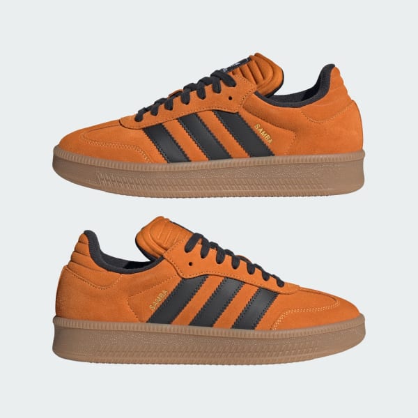 Another one of our icons gets the XLG treatment this season. An oversized version of our beloved Samba, these shoes have a puffier tongue and thicker outsole than the original. They're designed with a full-suede upper, synthetic leather 3-Stripes and soft textile lining. Dark pops of color on the lining, laces and 3-Stripes create a fresh new look that contrasts against the lighter base. A distinctive T-toe keeps the look rooted in heritage.