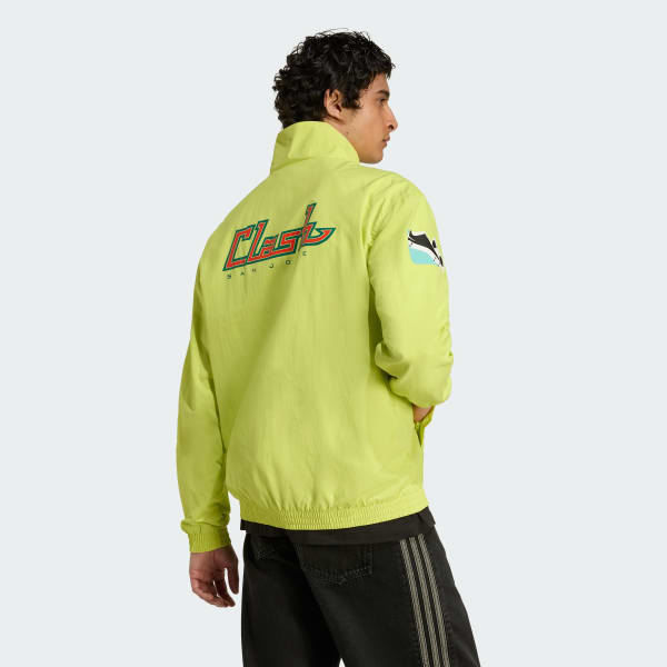 Part of a third kit range that celebrates San Jose kicking off a new era of North American soccer in April 1996. Created from soft woven fabric, this is the adidas jacket the players wear before games. That team name graphic on the back and scorpion badge on the chest rewind to a time when the Quakes went by a different name.