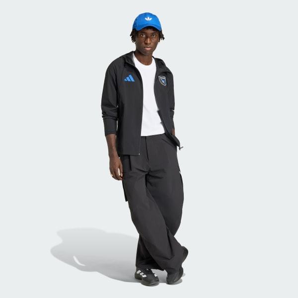 Discover the future of soccer-inspired streetwear with the San Jose Earthquakes Tiro Travel Full Zip Windbreaker. This piece blends the essence of running with the unmistakable feel of soccer.The ergonomic cut offers a sleek style, making the windbreaker a trusted companion both on and off the field. Crafted from a plain weave fabric, it has a slim fit that complements your silhouette while providing comfort and flexibility. The full zipper closure with a hood adds an extra layer of protection against the elements too.Whether you're heading to a match or exploring the city, this adidas windbreaker seamlessly integrates into your active lifestyle.