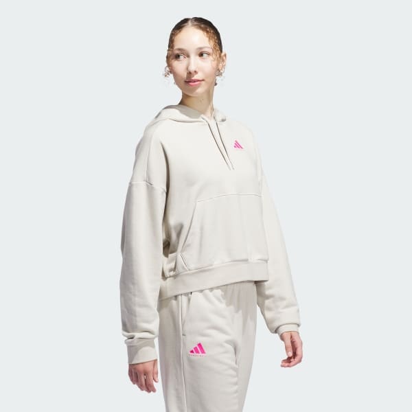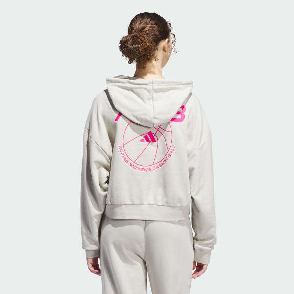 Bring your A-game to the court in this adidas basketball hooded sweatshirt. The soft French terry fabric and loose fit allow freedom of movement as you drive to the hoop, while ribbed cuffs keep you cozy. Rep your love of the game with the embroidered basketball graphics on the front and back.