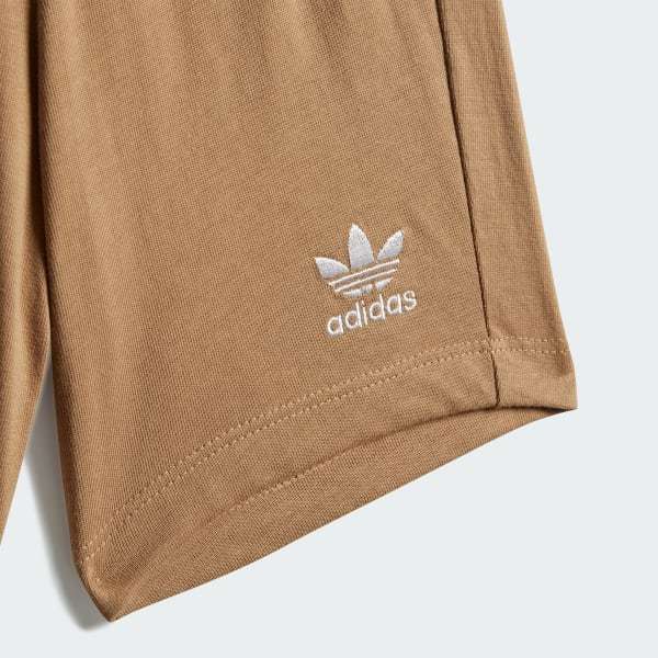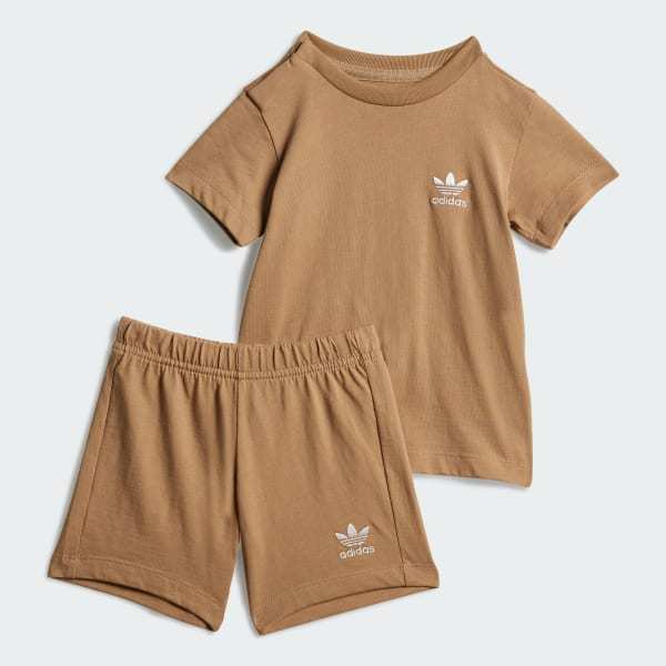 When adventure calls, comfort comes first. This infants' shorts and tee set is built in soft cotton single jersey and has a snap-button closure on the tee for easy on and off. An embroidered Trefoil logo on the chest and legs, plus ribbed details throughout, give your little one classic sport style.