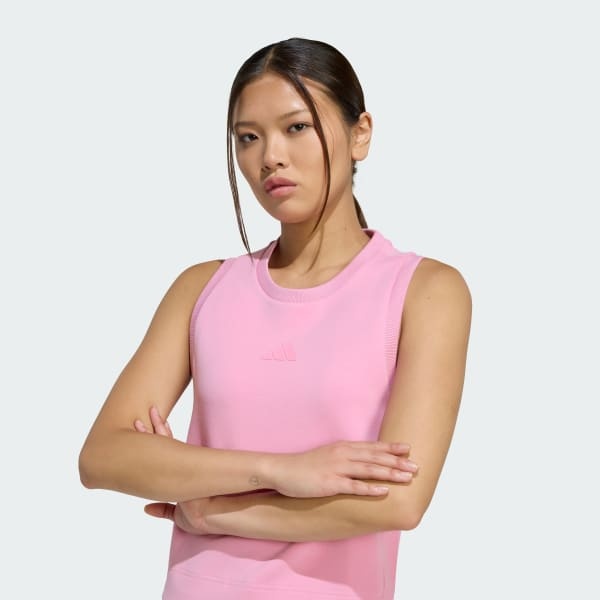 A slim, leisurely tank made with stretchy, extra-soft spacer fabric.
