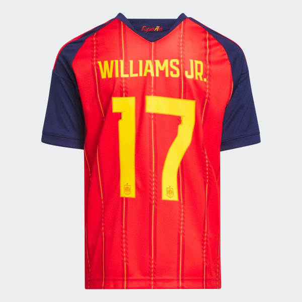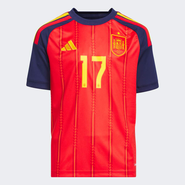 Let your young soccer fan show off their passion with energy and confidence in the Spain 26 Home Jersey. Inspired by the vibrant colors and classic elements of the Spanish flag, this jersey celebrates elegance—whether cheering at home, playing with friends, or heading to practice.The jersey features adidas’ Climacool technology. Cool. Dry. Ready. Climacool wicks and disperses sweat for a cool, dry and distraction free performance. Designed with a regular fit, it moves easily through school activities, pick-up games, and family outings. The knit construction delivers a comfortable feel, while the embroidered adidas logo, club crest, and laid-on 3-Stripes add authentic, stylish touches. This piece connects every moment on and off the field to the excitement of soccer culture, making it a must-have for any young supporter.