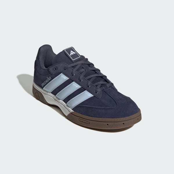 These adidas shoes, part of the iconic Handball Spezial family, deliver modern style in a shoe that's also playable on court. The upper combines smooth leather with suede, with a T-shaped mudguard for protection and forefoot stability. Adiprene+ cushioning and a rubber outsole provide enhanced comfort and grip.
