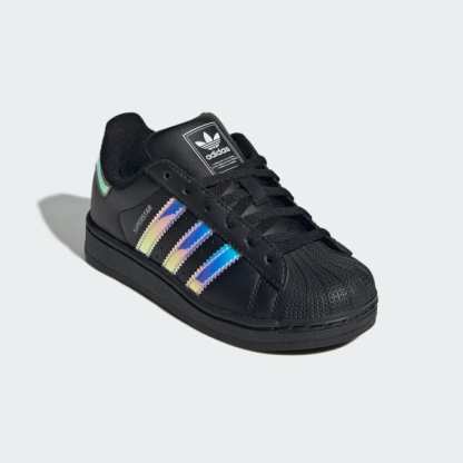 The Superstar II Shoes are back, bringing the iconic style that dominated the streets in the 90s and 2000s. These shoes, with the world-famous shell toe design, are crafted for kids who want to stand out and make a statement. The shoes include a rubber outsole that provides durability and grip. The molded sockliner provides all-day comfort, making them suitable for playtime, school, or any adventure.The shoes feature branding elements such as the serrated 3-Stripes, Trefoil logo on the heel tab and a Superstar box logo on the tongue. They also include shiny sparkle updates with iridescent material on the stripes and heel tab.adidas has brought back these shoes with all the original details that made them a classic. Get ready to see your child shine in these timeless sneakers.