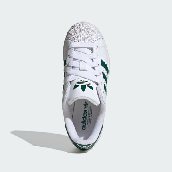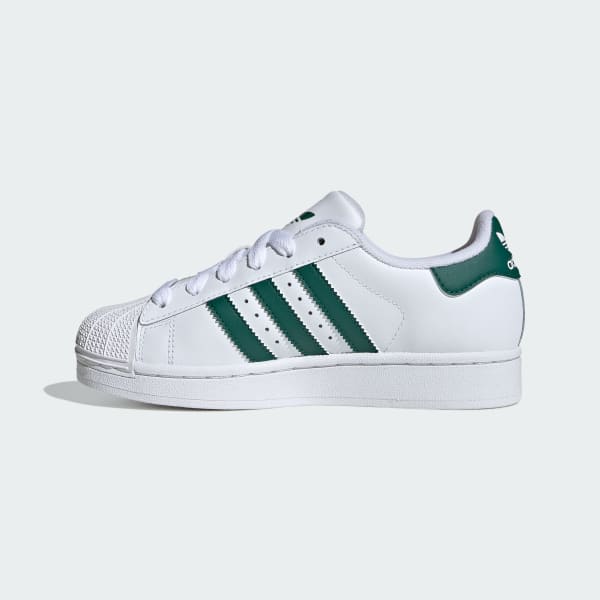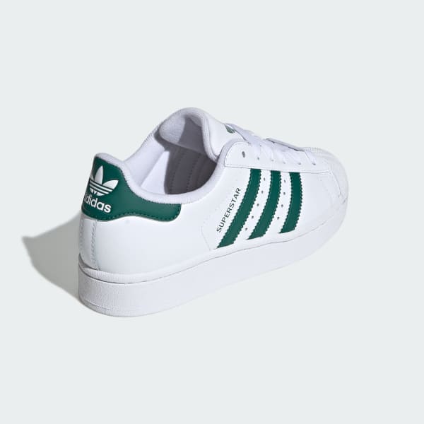 These juniors' adidas Superstar shoes give you all the features you crave from the original like the famous shell toe, serrated 3-Stripes and a box logo on the tongue. With a leather and synthetic upper, these retro-inspired kicks provide all-day comfort and style. A look that dominated in the '90s and 2000s is still back and still going strong. Hits of color on the 3-Stripes and heel tab make these sneakers pop.