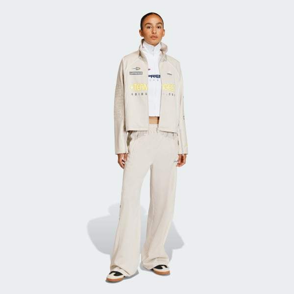 The Teamgeist Faux Leather Track Pants are where motorsport meets fashion. Inspired by the precision and engineering of F1, these tracksuit bottoms embody the spirit of racing with their premium construction and bold design. The faux leather material gives a sleek look, while the drawstring lets you adjust the fit to suit you. The loose silhouette allows for freedom of movement, making the tracksuit bottoms a good choice for casual wear. The panel detailing and graphics add a touch of racing flair, reminiscent of classic moto designs seen on racing suits and F1 cars.Whether you're lounging or out and about, these sweatsuit bottoms let you elevate your style. Embrace the rebellious optimism of adidas Originals and make a statement with every step.