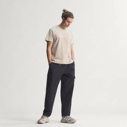 Loose-fit cargo pants with an elasticized waistband for custom comfort.