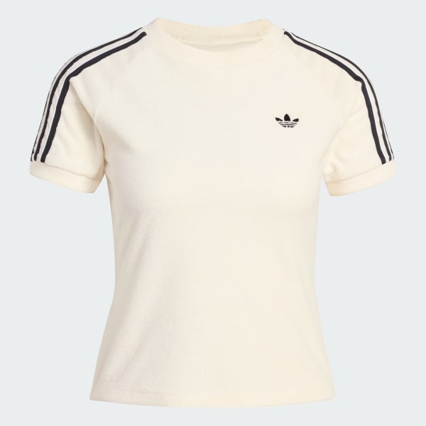 The Terry Towel Cali tee delivers a fresh take on classic sport style, defined by the distinctive texture of its terry loop fabric. Designed for everyday wear, it brings comfort and versatility to your wardrobe in a modern silhouette.A slim fit shapes the body with a flattering profile, while the crew neckline adds an easy, casual edge. The smooth fabric sits comfortably against the skin, offering effortless wear throughout the day.Finished with the iconic adidas Trefoil, this tee blends timeless sport heritage with a contemporary look, creating a staple piece that adds character to your rotation.