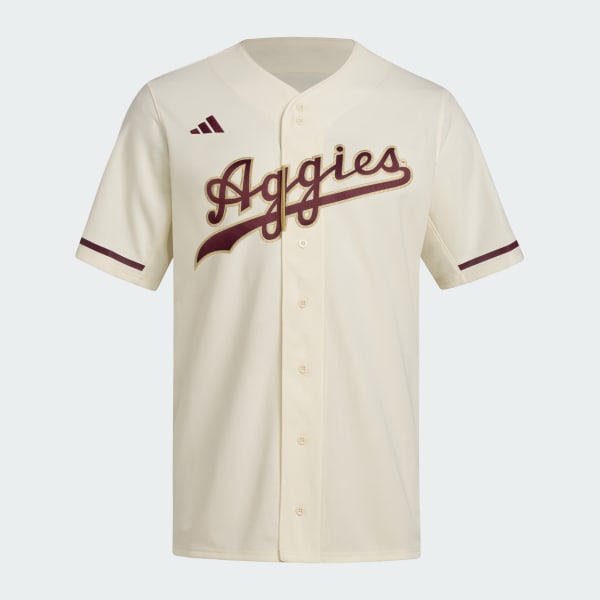 Show off your school pride during baseball season and every other season too in this Texas A&M jersey from adidas. It's made of durable polyester and features a full button front for an authentic look. Aggies graphics on the chest complete the look.This product is made with 100% recycled materials. By reusing materials that have already been created, we help to reduce waste and our reliance on finite resources and reduce the footprint of the products we make.