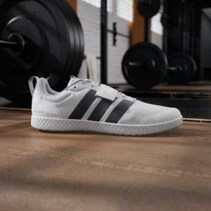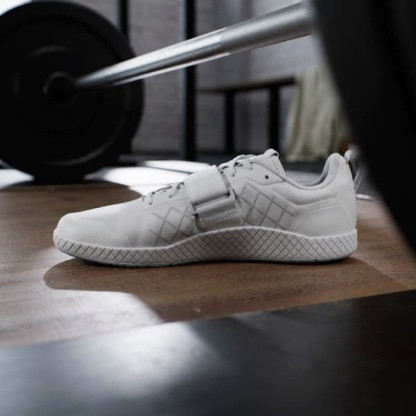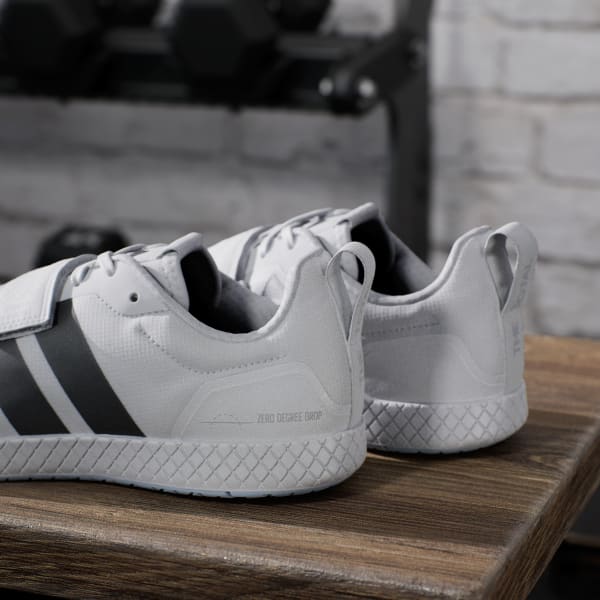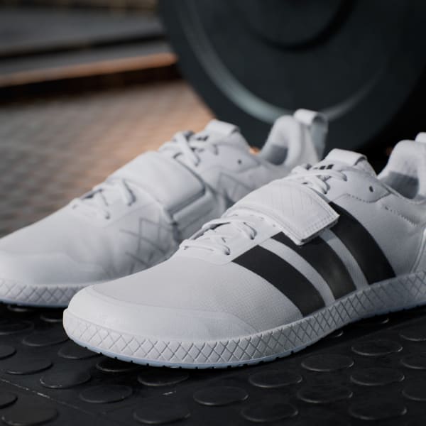 Created for no-fuss lifting, these adidas weightlifting shoes have a zero heel raise to produce the low-to-the-ground stance many deadlifters prefer. Complementing the lace closure, that wide hook-and loop strap adds extra lockdown. A grippy rubber outsole and roomy toe box ensure you're comfortable and stable under the heaviest weights.
