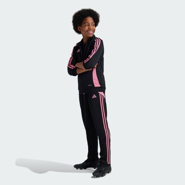 Take your training up a notch in these juniors' track pants from adidas. Built to keep you comfortable and focused during intense drills, they're made from durable doubleknit fabric. Moisture-wicking AEROREADY keeps your legs dry for distraction-free soccer. Zip pockets secure essentials, leaving you to concentrate on improving your game.This product is made with 100% recycled materials. By reusing materials that have already been created, we help to reduce waste and our reliance on finite resources and reduce the footprint of the products we make.