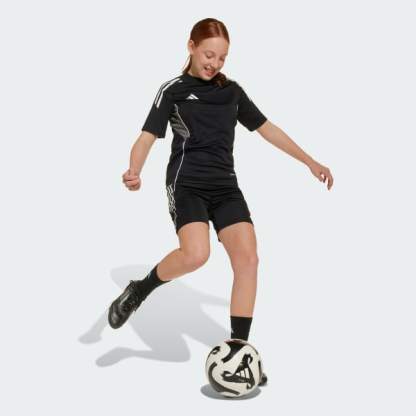 Attack training sessions with the intensity of match day in these juniors' soccer shorts. Part of the adidas Tiro 25 Competition range, they're designed to flex with your movements as you negotiate high-intensity drills and small-sided games. AEROREADY manages moisture to keep you dry and comfortable, and zip pockets store training essentials like energy bars.This product is made with 100% recycled materials. By reusing materials that have already been created, we help to reduce waste and our reliance on finite resources and reduce the footprint of the products we make.