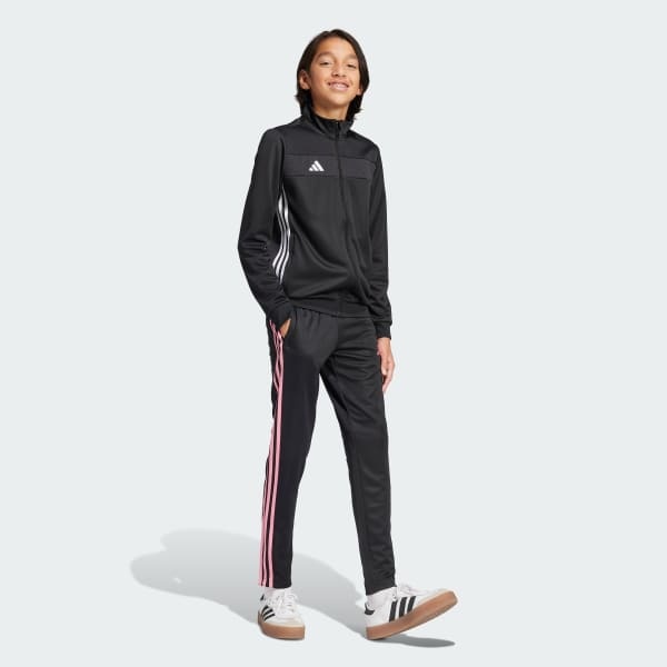 Bring your beautiful game everywhere you go. These juniors' Tiro 25 Essentials pants take their lead from soccer training apparel to offer a sporty look and comfortable feel. AEROREADY controls moisture to keep you dry, while zip pockets securely stow must-haves. With their smooth fabric and bold style, these adidas track bottoms will quickly become first pick from your wardrobe.This product is made with 100% recycled materials. By reusing materials that have already been created, we help to reduce waste and our reliance on finite resources and reduce the footprint of the products we make.