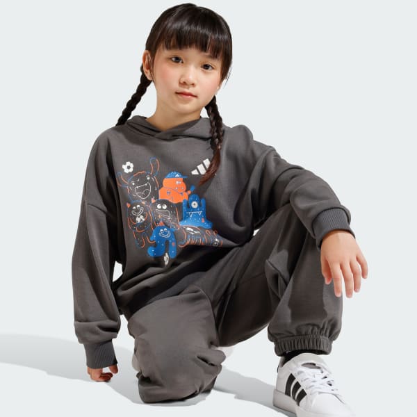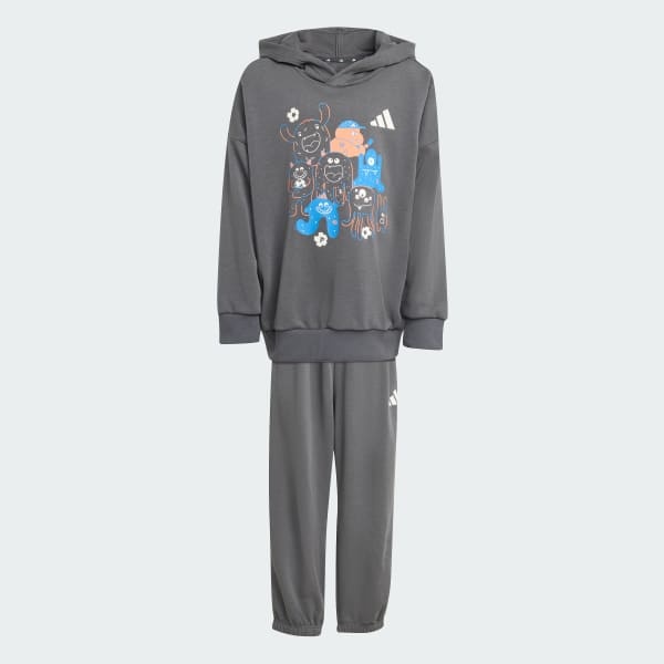 Junior soccer fans can bring monster energy to playtime with the Tiro_nster Jogger Set. Inspired by the excitement of the 2026 Soccer World Cup, it pairs sporty energy with fun monster characters, each representing a key role on the field – goalkeeper, striker, defender, and coach. Together, they celebrate teamwork and collaboration in a colorful, creative way.Made from soft French terry, this sweatsuit set combines comfort and fun for everyday wear. The relaxed fit allows easy movement for running, jumping, and playing, while the iconic 3 Bar logo on the chest and leg adds a touch of adidas authenticity.Finished with lively soccer monster graphics and a collectible sticker hangtag, this set brings playful energy to kids' wardrobes –designed for movement, powered by adidas.