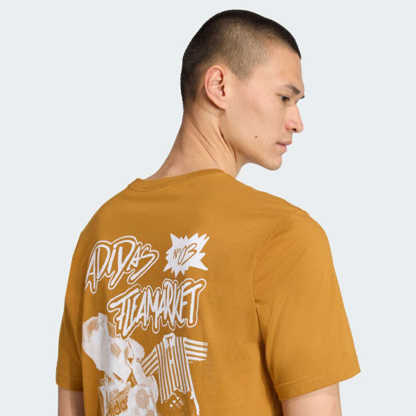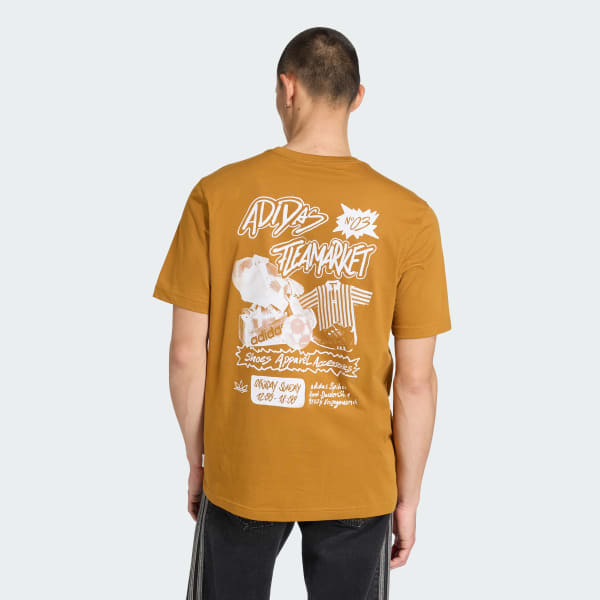 Make an impact when you enter the room in this adidas tee. The large adidas "flea market" graphic on the back is impossible to ignore. Whether you're meeting friends or running errands, the loose shape and soft fabric ensure you stay comfortable.