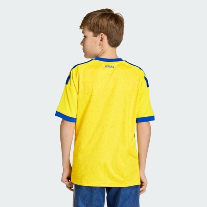 With its considered design, sharp details and adidas tech, the Ukraine 26 Home jersey is a bold statement of team loyalty that lets kids support their team.Thanks to adidas Climacool technology this jersey delivers faster sweat release and absorbency to help aid cooling, for all-day comfort that keeps pace with them.Cut in a regular fit for relaxed movement and finished with an embroidered national crest that's all about team pride. Signed off with the adidas 3-Stripes, it delivers team energy for young fans.