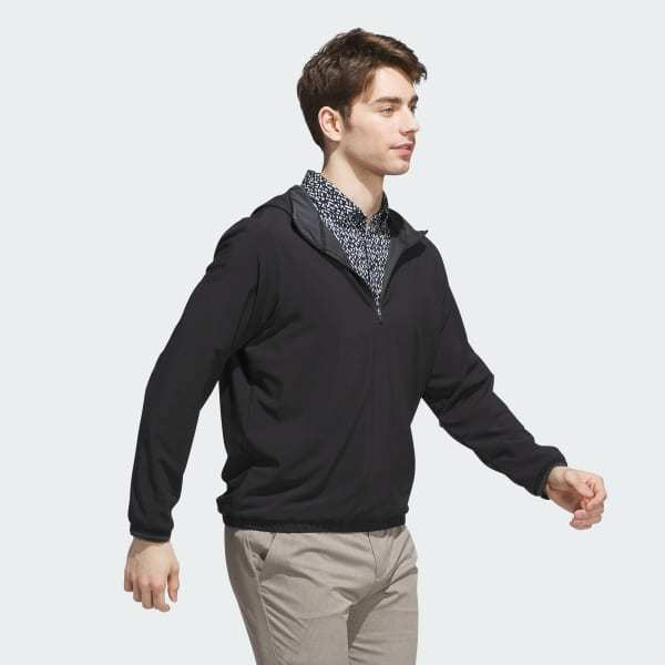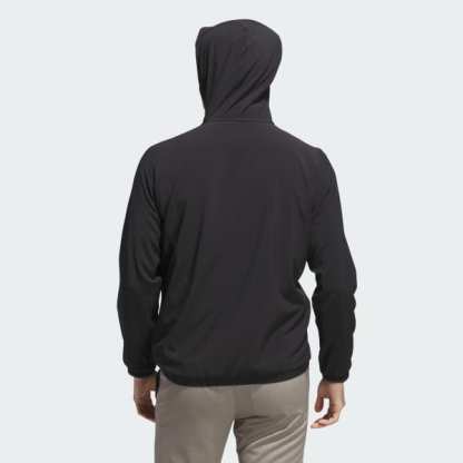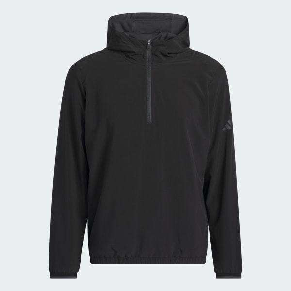 Layer up and focus on your swing. This adidas golf anorak jacket balances athletic style and performance for the course. A regular fit and light stretch offer full mobility for clean drives and focused putts. A half-zip and drawcord-adjustable hood let you adjust the look.
