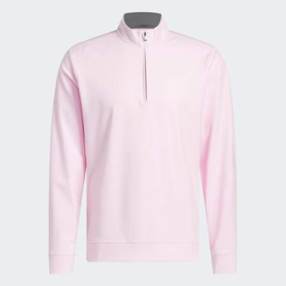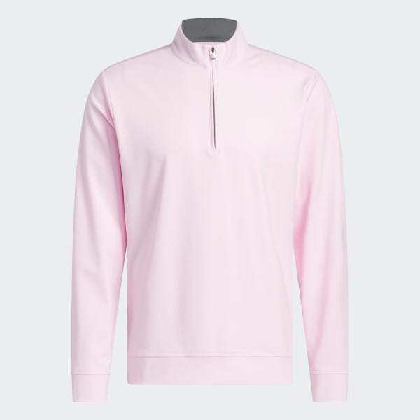 Made for year-round performance with clean, classic course style, this adidas golf quarter-zip top is a versatile layer for early mornings and cool days on any course. A stand-up collar seals in heat when zipped, and soft, stretchy interlock fabric lets you bend and twist without restriction.