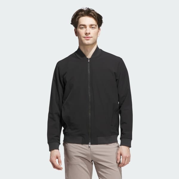 Elevate your cool weather golf uniform with this bomber jacket-inspired adidas golf jacket. A two-way zip allows easy access to pockets, and the classic ribbed cuffs, hem and collar seal in warmth.