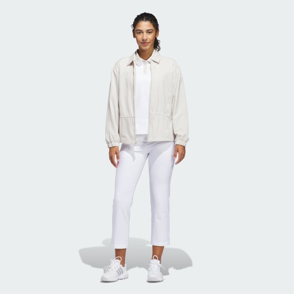 Step onto the golf course with confidence in the Ultimate365+ Peplum Grid Jacket. This piece of classic performance golf clothing blends tradition with modern functionality.The loose fit design offers a relaxed silhouette, great for layering over your favorite golf attire. The plain weave material provides a smooth and durable finish.The collar adds sophistication, with a full zipper closure for convenience. This jacket is a testament to adidas' commitment to quality and performance.Whether you're navigating the fairways or socializing after the game, this jacket offers comfort and style, helping you stay focused on your swing.