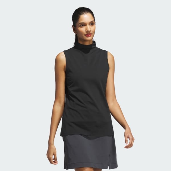 Hot summer days on the course call for a sleeveless top that keeps you cool. The soft interlock fabric of this adidas golf top moves with you as you twist and bend with every drive. A mock neck provides extra coverage for an elevated look that plays well on any course.