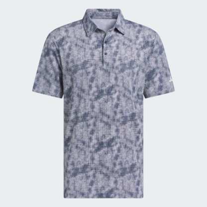 Elevate your game with the textured feel and modern all-over print of this adidas golf polo. A regular fit and built-in stretch support natural mobility for powerful drives and smooth putts.