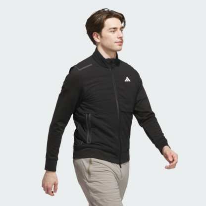 Built for warmth without sacrificing performance, this adidas golf jacket pairs insulated warmth with a stretch build that supports a natural range of motion. A full zip means it's easy to layer on and off, and zip pockets provide secure storage for the basics.