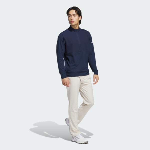 Layer up for cool-weather play. This adidas golf pullover adds warmth during chilly rounds to help you maintain focus. Plenty of stretch ensures you can swing and bend without restriction, and a water-repellent finish lets you play through occasional showers.