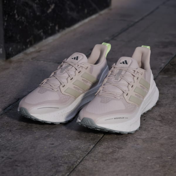 Roam freely and explore beyond the beaten path in these adidas running shoes. With a lugged Adiwear outsole and a water-repellent upper that repels splashes and mud, they'll take you from sidewalk to park trails and back again. With every stride, Bounce cushioning provides enhanced comfort and flexibility. Reflective details light up in dim light.This product features at least 20% recycled materials. By reusing materials that have already been created, we help to reduce waste and our reliance on finite resources and reduce the footprint of the products we make.
