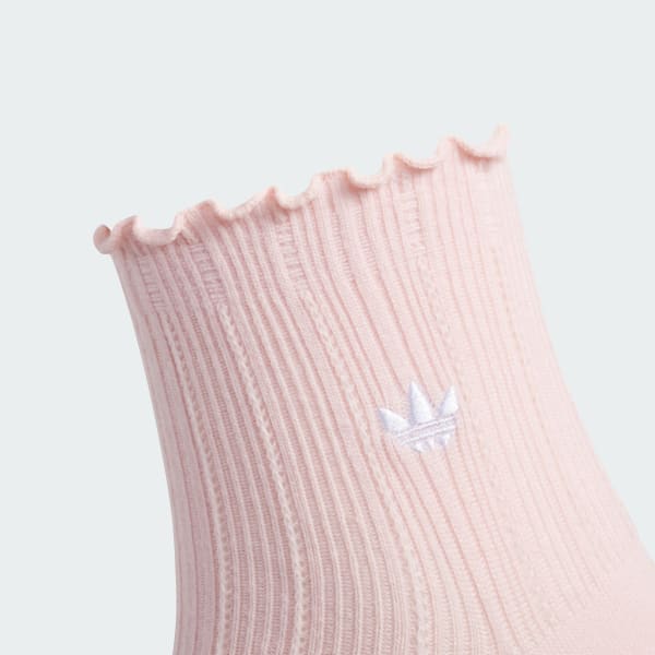 Add some ruffle to your shuffle with the adidas Originals Ruffle 3-Pack Quarter Socks. These lifestyle socks are made with soft, stretchy yarns for a snug fit, plus moisture-wicking ability for added comfort. Ruffle detail along the cuff edge offers a fun visual element.