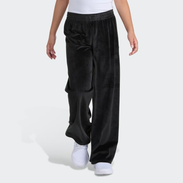 The Elastic Waistband Wide Leg Velour Pants is designed for kids who want comfort that stands out. Whether it’s a busy school day, weekend adventures, or hanging out with friends, these pants deliver a bold look with a relaxed vibe.The wide leg shape with open hems creates a modern silhouette that moves easily from playtime to downtime. adidas brings a soft velour rib fabric blend that feels plush and flexible.The elastic waist with drawstring allows adjustable fit, while the regular fit strikes the right balance between loose and snug. Machine washable for easy care, these pants are ready to keep up with their daily activities.With adidas sportswear, comfort and style go hand in hand, making these pants a go-to choice for young trendsetters.