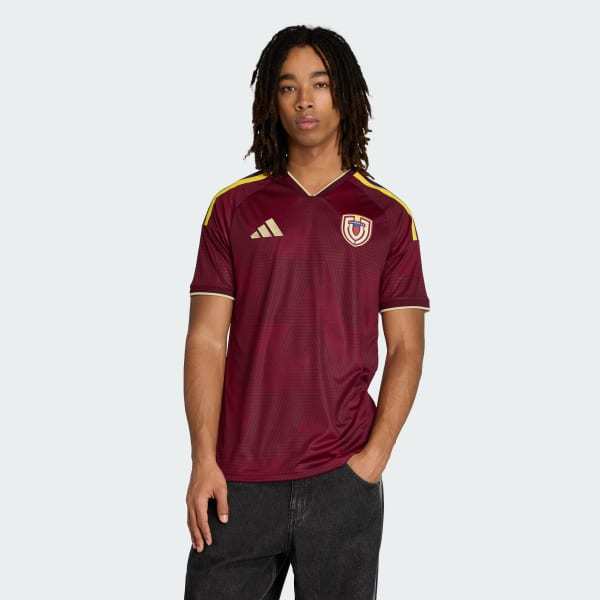 Wear the Venezuela 26 Home Jersey with pride. Enjoy a unique look with the all-over graphic print inspired by the majestic Tepui mountains of Venezuela. Whether you're cheering from the touchline or playing on the field, this is your go-to item for comfort and style. Crafted with advanced Climacool technology. Cool. Dry. Ready. Climacool wicks and disperses sweat for a cool, dry and distraction free performance. Made of interlock knit fabric in a slim fit that moves with your body. The eye-catching graphic is complemented by the bold adidas 3-Stripes, embroidered adidas logo and team crest, combined with the EQT collar adding a classic touch to your look and making you stand out from the crowd. Celebrate the spirit of soccer with adidas and showcase your passion for the Venezuelan national team with this stylish short-sleeved jersey designed for performance.
